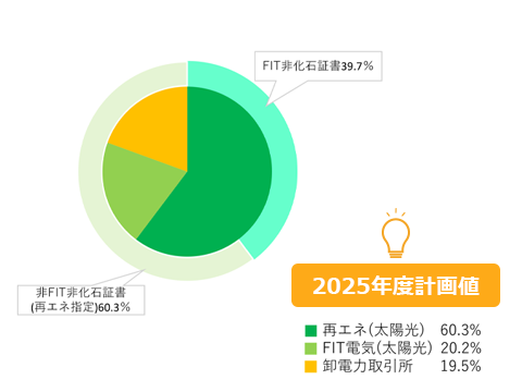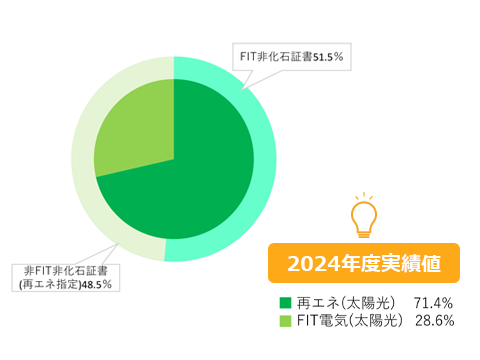 また、非化石証書はオークションでの調達となりますので100 %とならないことがございます。